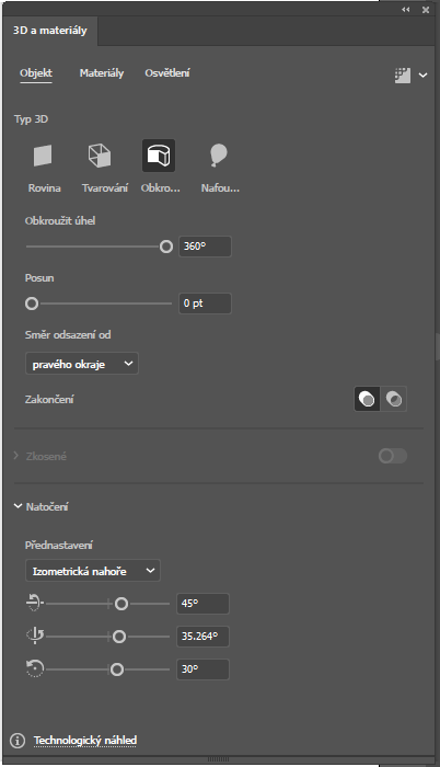 • V tomto okne ešte stále ostaneme a zmeníme prednastavenie na izometrické vpravo.