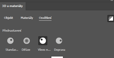 • Prejdeme do sekcie Osvetlenie, kde si dokážeme nastaviť smer svetla, ktoré svieti na náš text.