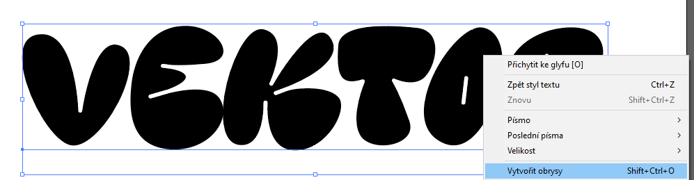 • Klikneme na písmo pravým tlačidlom myši, a zvolíme možnosť Vytvoriť obrysy.