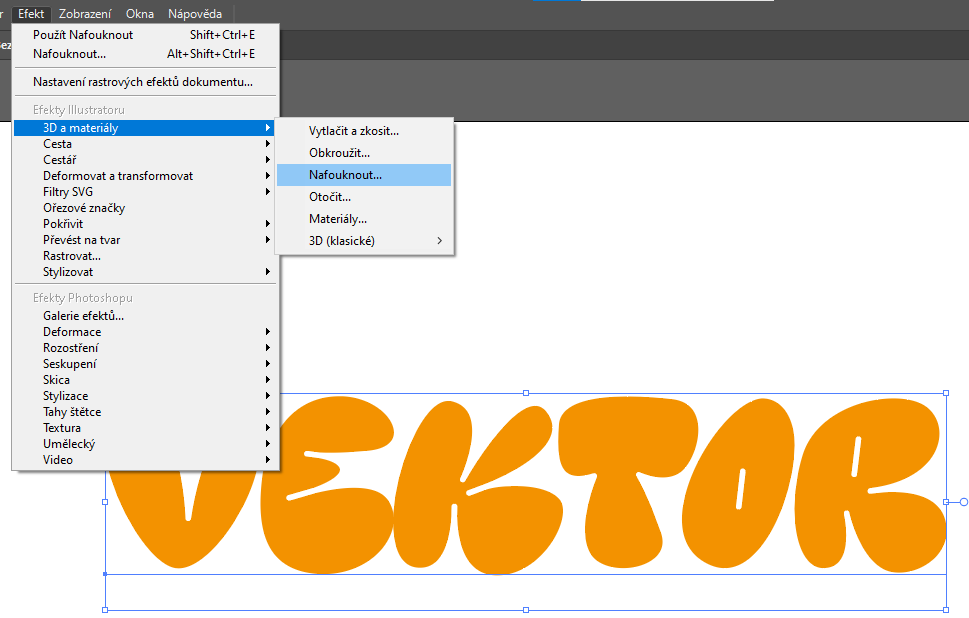 • Následne zájdeme do okna Efekt a zvolíme možnosť nafúknuť.